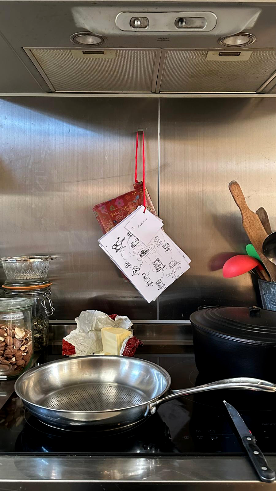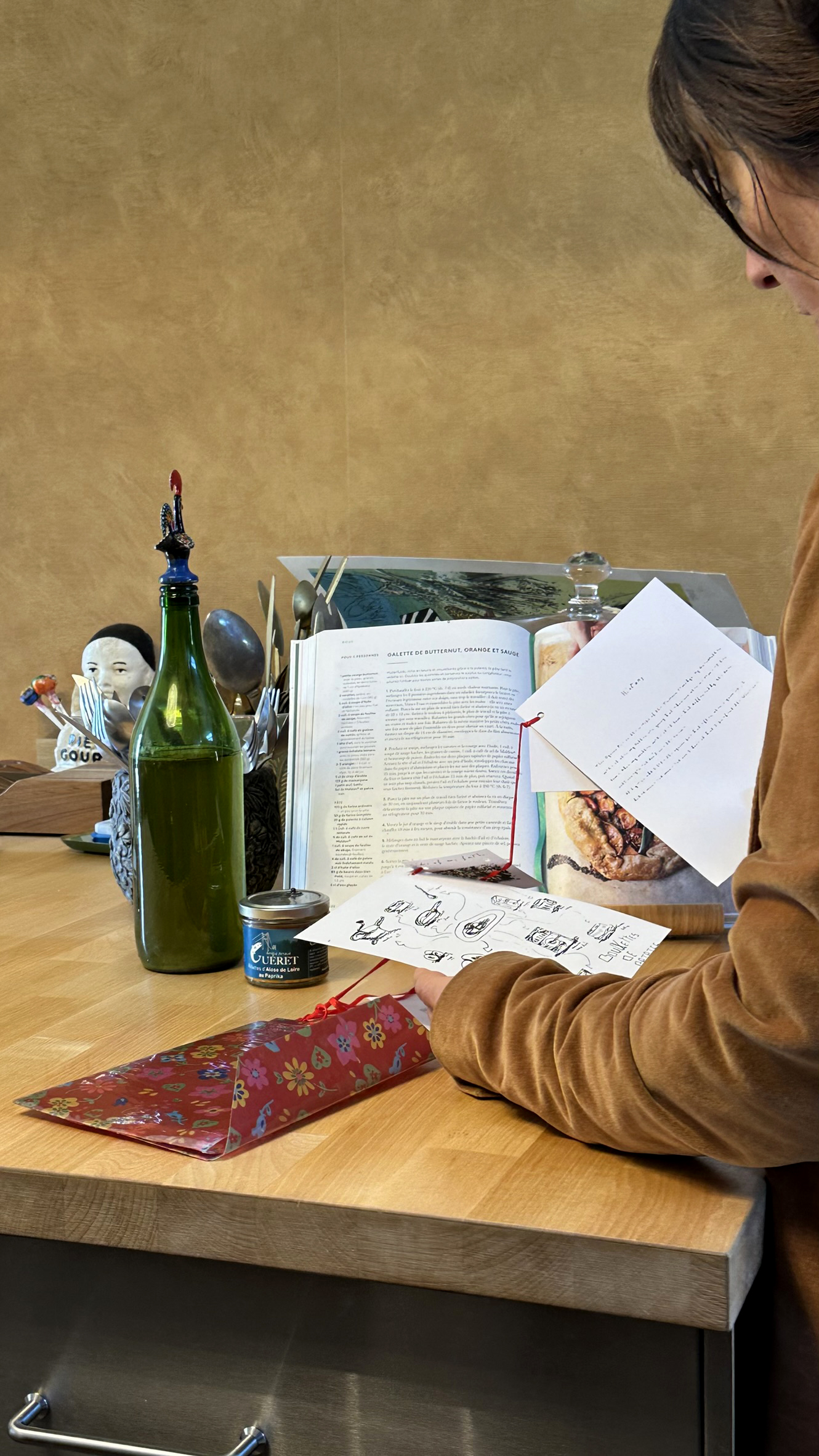 Livret/pochette de cuisine contenant 3 recettes de familles. Tout écrite avec l’écriture de celle qui me la transmise : ma maman et mes deux mamies.