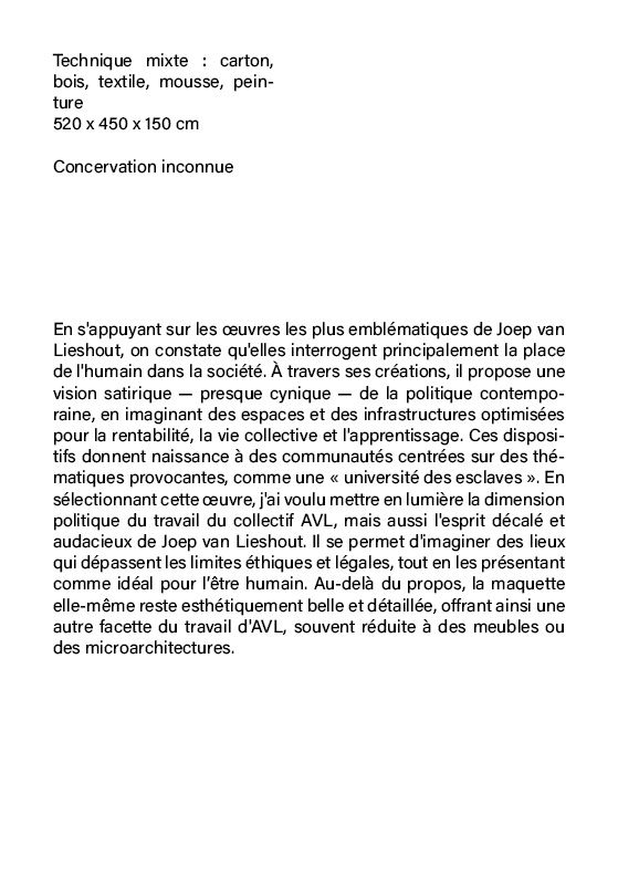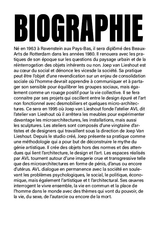 Travail de recherche et de mise en page sur le designer Joep Van Lieshout et son atelier. Recherche et expérimentation sur un projet a la manière du designer.