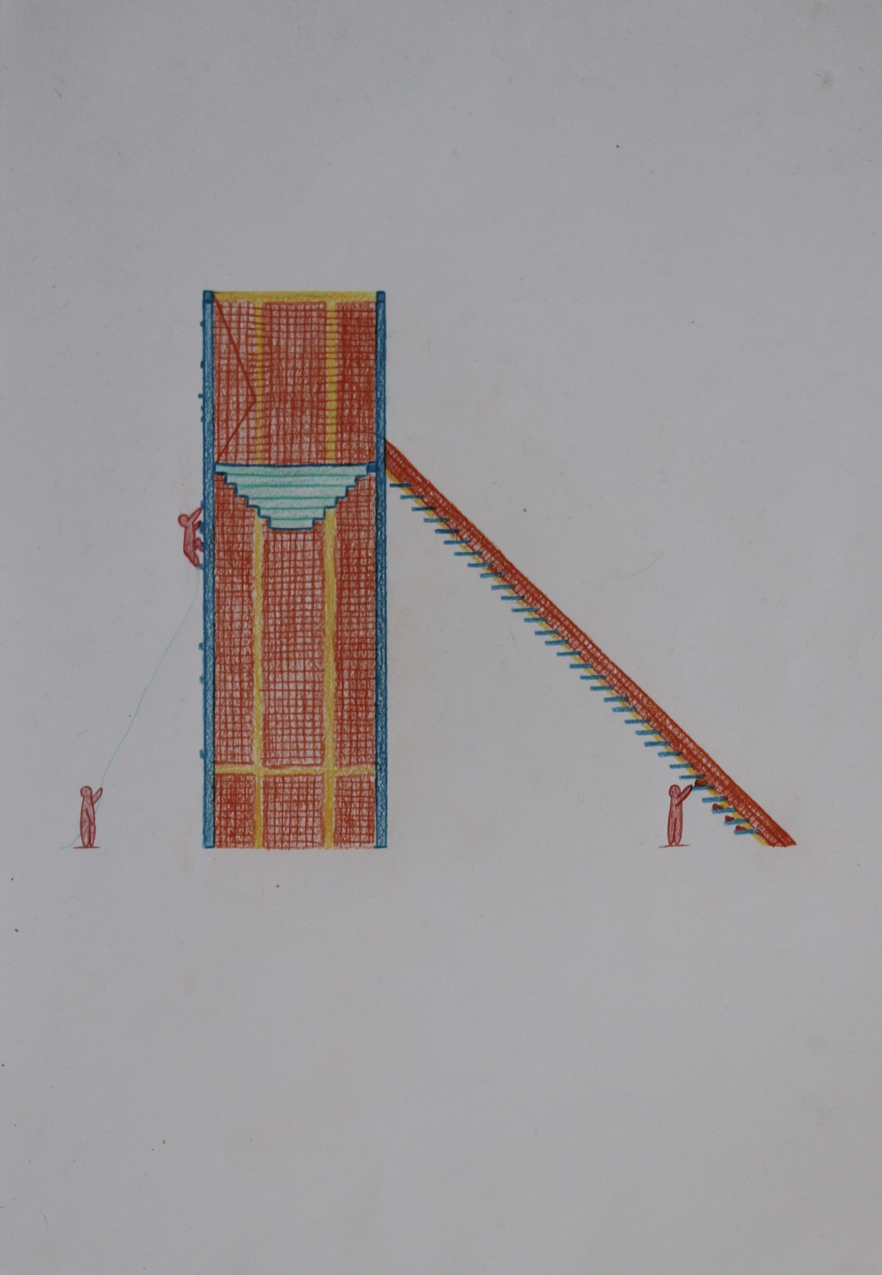 Ce nouveau choix de pavillon correspond mieux à la pratique de l’escalade. Car les 3 espaces créés (escalier, le mur extérieur et l’intérieur) correspondent directement à mes actions ( la grimpe de voies, les vestiaires et les blocs). Je n’ai pas eu besoin de faire de modification de la structure, ce qui m’a permis de rester radicale dans mes choix.