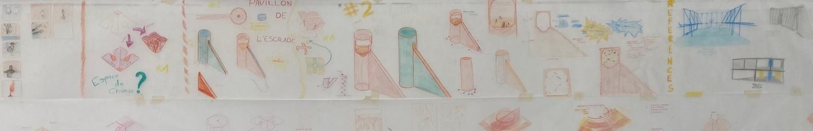 Ce nouveau choix de pavillon correspond mieux à la pratique de l’escalade. Car les 3 espaces créés (escalier, le mur extérieur et l’intérieur) correspondent directement à mes actions ( la grimpe de voies, les vestiaires et les blocs). Je n’ai pas eu besoin de faire de modification de la structure, ce qui m’a permis de rester radicale dans mes choix.