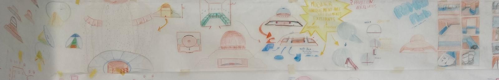 Création d’un pavillon inspiré par l’un de James Turell avec l’ajout d’une action quotidienne. L’objectif a été d’optimiser et de se servir du pavillon afin de profiter des avantages de ce même pavillon pour répondre au contrainte de l’action.