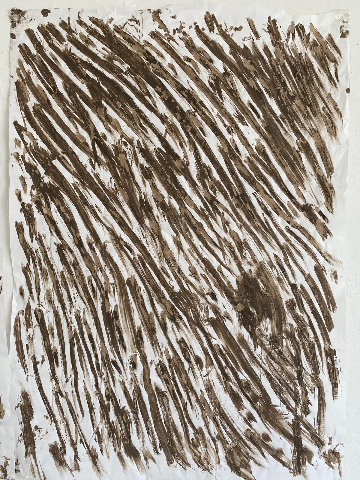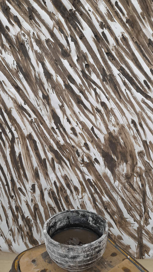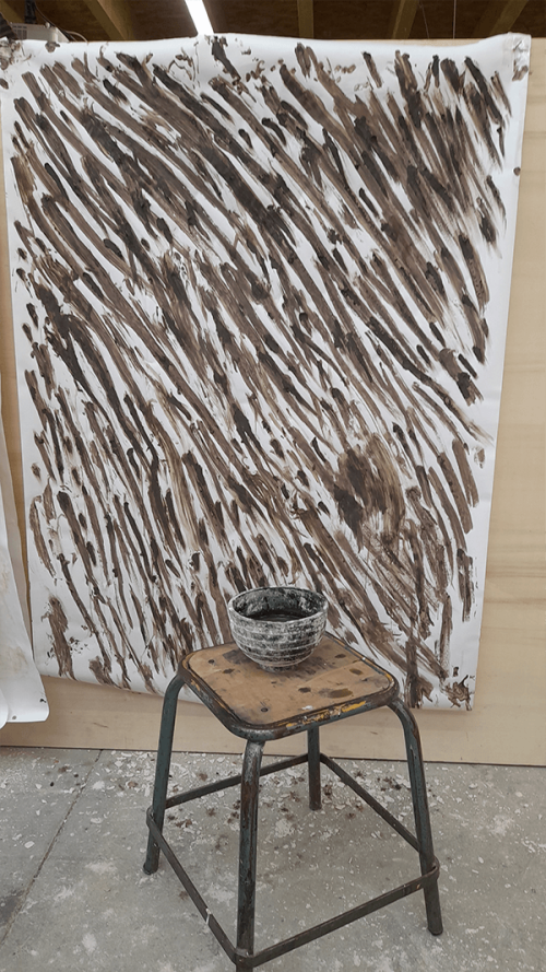 Mais après discutions, j’ai remarqué l’énergie et le mouvement que dégage de ces peintures. ce qui ma amené a un travail de danse sur une plaque de terre.